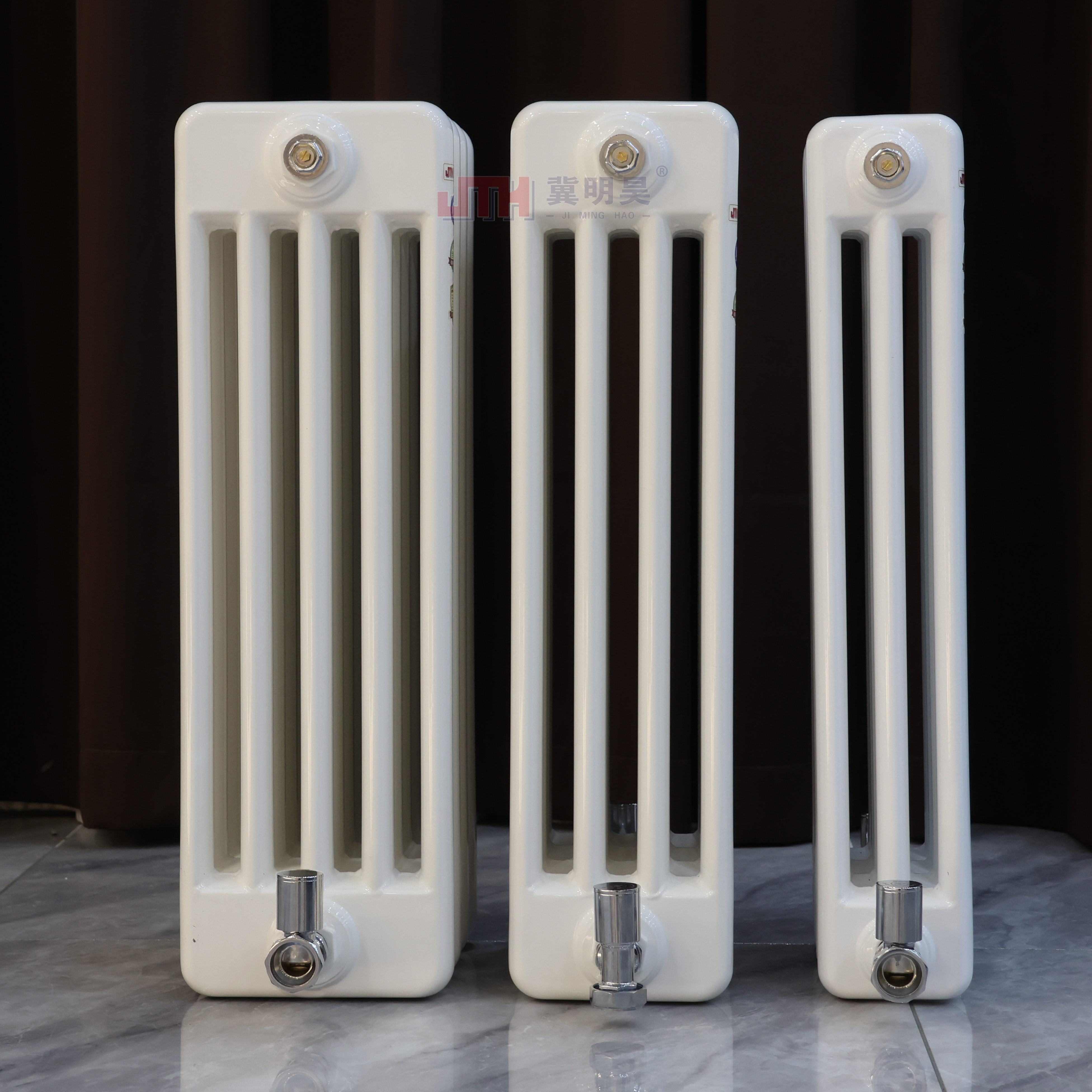 河北冀明昊橢三、橢四、橢五系列鋼制橢圓柱散熱器,在結(jié)構(gòu)與性能上形成差異化適配優(yōu)勢(shì)。橢三系列作為基礎(chǔ)款,采用三柱橢圓柱結(jié)構(gòu)設(shè)計(jì),單組散熱量覆蓋 800-1200W(ΔT=64.5℃),適配 15-25㎡的中小戶(hù)型房間,緊湊的柱體布局可減少墻面占用面積,尤其適合臥室、書(shū)房等空間;橢四系列升級(jí)為四柱結(jié)構(gòu),散熱量提升至 1200-1600W,增加的散熱柱體強(qiáng)化熱交換效率,適配 25-35㎡的客廳、辦公室等中等空間,兼顧散熱速度與溫度穩(wěn)定性;橢五系列則以五柱結(jié)構(gòu)打造大空間供暖解決方案,單組散熱量可達(dá) 1600-2000W,能快速平衡 35-50㎡的商鋪、會(huì)議室等大面積區(qū)域溫度,且橢圓柱型的流道設(shè)計(jì)讓熱水循環(huán)更順暢,避免局部積氣影響散熱。